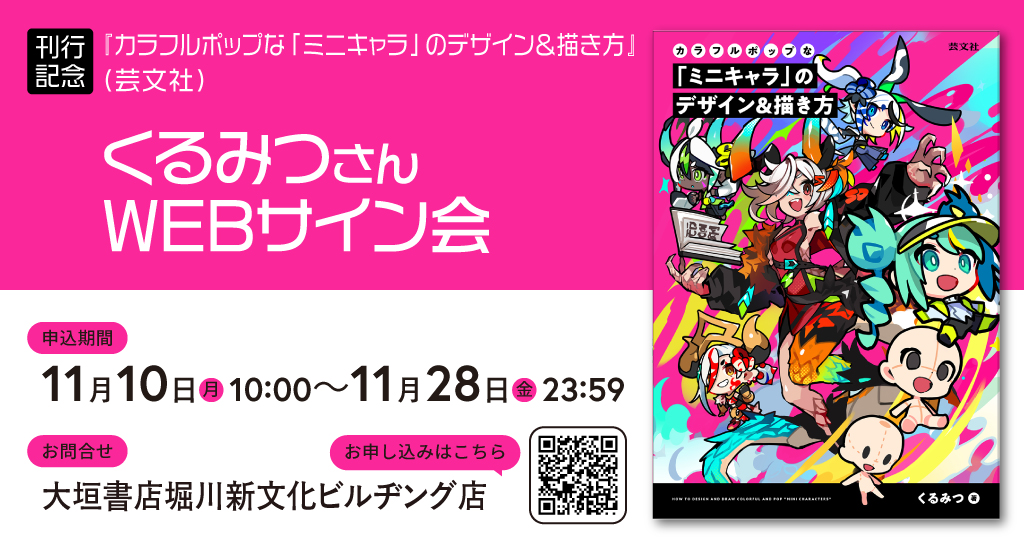 【11/28まで】くるみつさん『カラフルポップな「ミニキャラ」のデザイン&描き方』刊行記念WEBサイン会 開催のお知らせ
