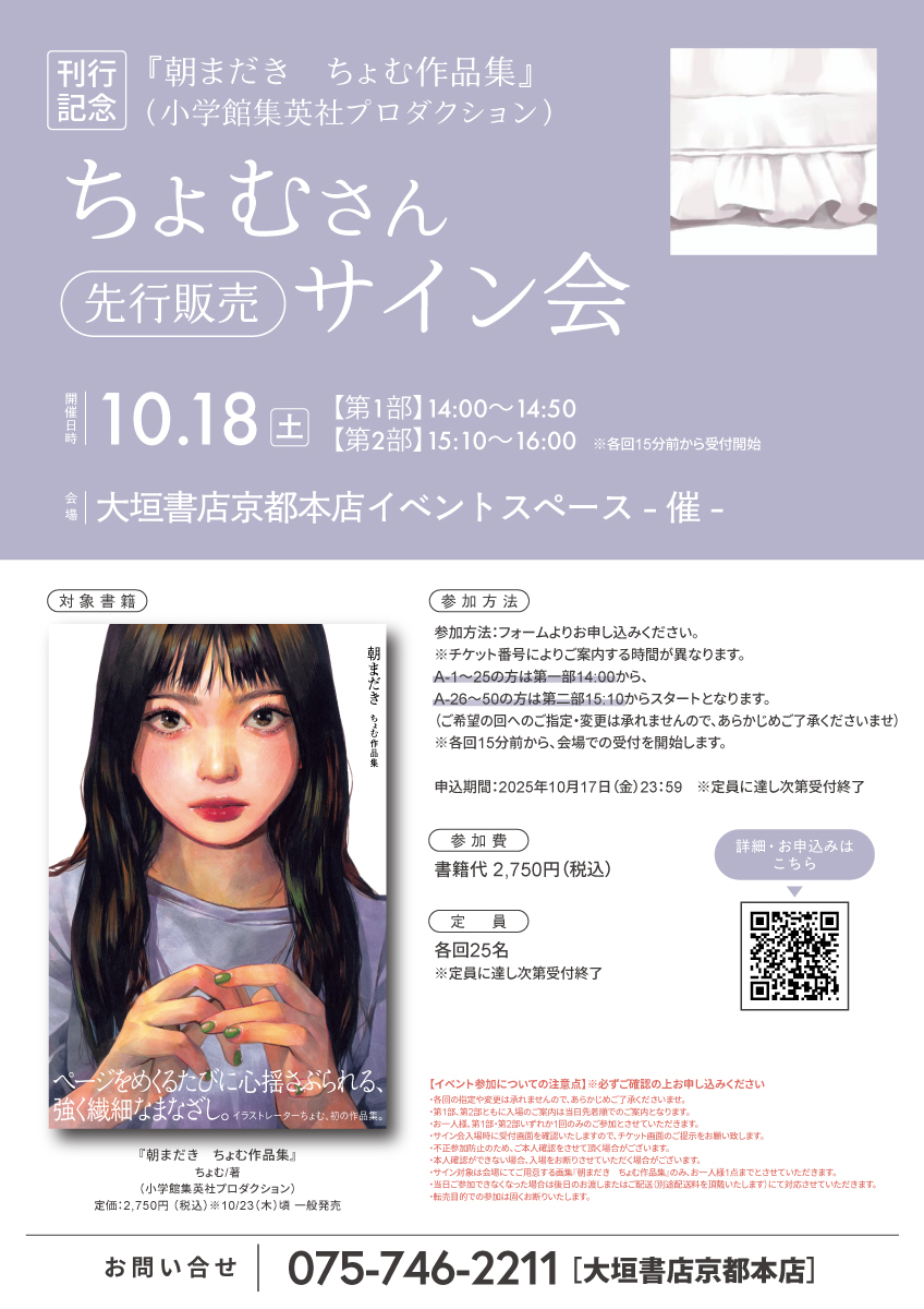【10/18開催】『朝まだき ちょむ作品集』刊行記念・先行販売サイン会開催のお知らせ