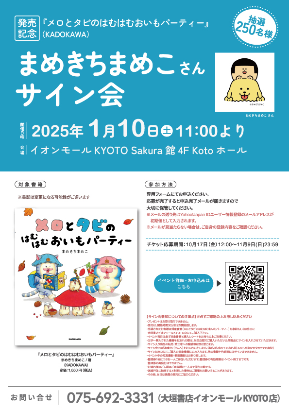 【1/10開催】【抽選】まめきちまめこさん『メロとタビのはむはむおいもパーティー』発売記念サイン会 開催のお知らせ