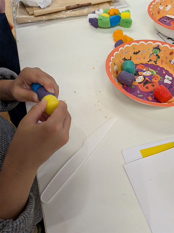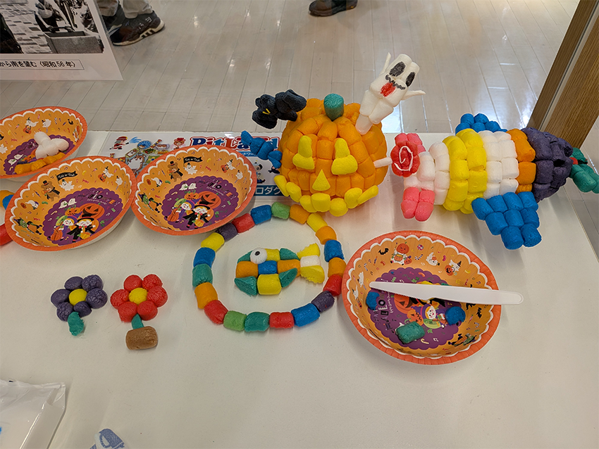 とうもろこしのデンプンから作られた、小さなお子様から遊んでいただける新感覚のブロック。少量の水分でペタペタくっついてゆく感覚に、夢中になって遊んでくださいました!
