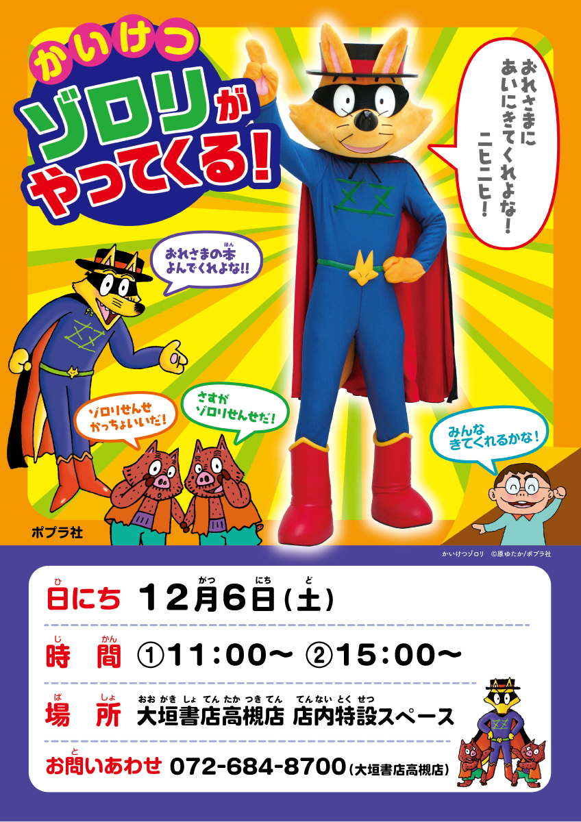 2025年11月11日絵本やTVアニメでおなじみのかいけつゾロリがお店に遊びにやってきます。