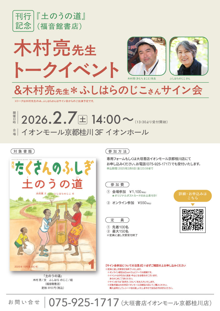 【2026/2/7開催】『土のうの道』刊行記念 木村亮先生トークイベント&木村亮先生*ふしはらのじこさんサイン会 開催のお知らせ