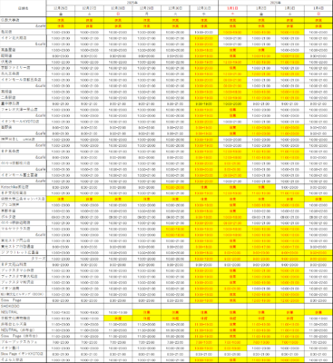 年末年始の営業時間のお知らせ