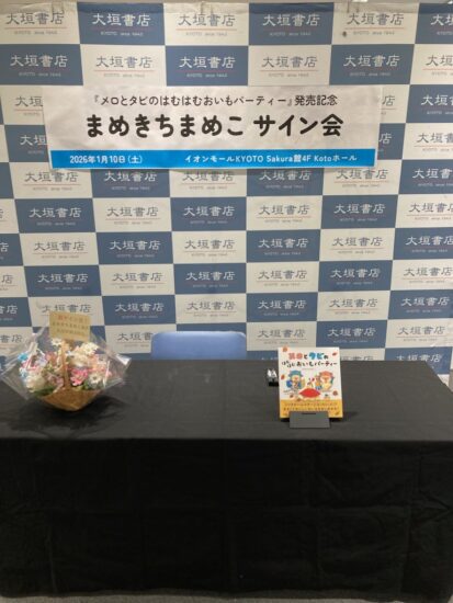 2026年1月11日2026年1月10日(土)大垣書店イオンモールKYOTO店 sakura館4F kotoホールにて、まめきちまめこ『メロとタビのはむはむおいもパーティー』発売記念サイン会が開催されました。