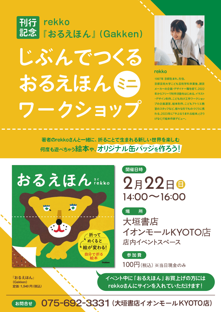 2026年2月5日“著者のrekkoさんと一緒に、折ることで生まれる新しい世界を楽しむ何度も遊べちゃう絵本や、オリジナル缶バッジを作ろう!