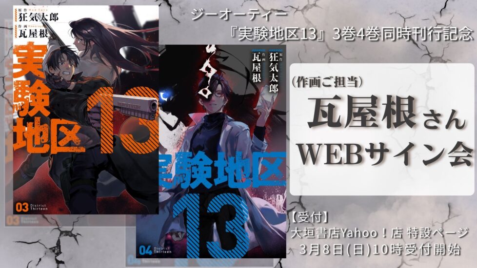 ジーオーティー『実験地区13 3巻&4巻』刊行を記念して作画ご担当の瓦屋根さんによるWEBサイン会を開催いたします!