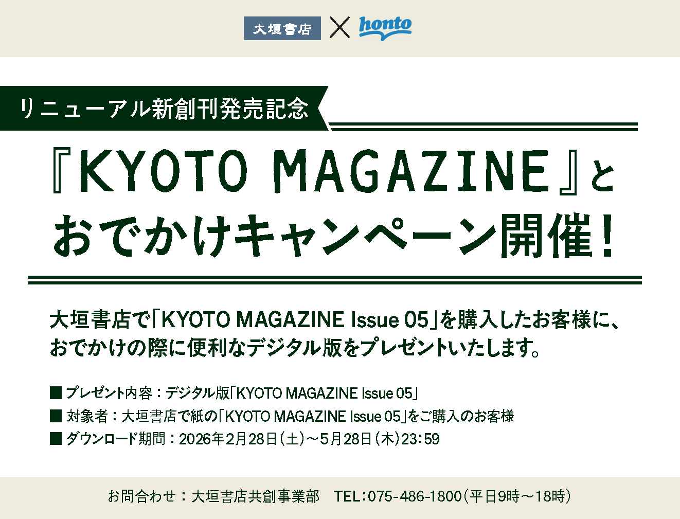 2026年2月27日大垣書店では、「KYOTO MAGAZINE 」リニューアル新創刊発売を記念して、対象書籍を購入したお客様に、