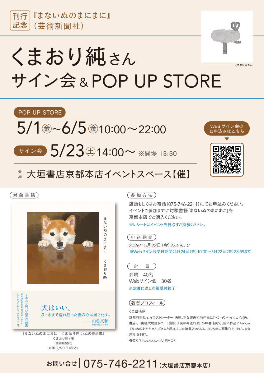 【5/1〜6/5】『まないぬのまにまに』刊行記念くまおり純サイン会&POP UP STORE 開催のお知らせ